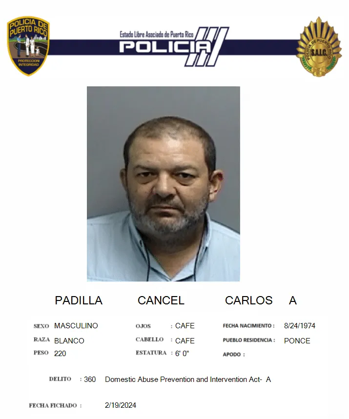 Agentes del Negociado de la Policía de Puerto Rico adscritos a la división de Arrestos Carolina y Ponce, diligenciaron dos órdenes de arresto por violaciones a la Ley 54 en los municipios de San Juan y Ponce. En el un hospital de San Juan, se arrestó a Enrique Santiago Tapia Rivera de 36 años y residente de Carolina, contra quien pesaba una orden de arresto expedida por el juez Wilfredo Viera del Tribunal de Carolina, con una fianza de $40 mil, por violaciones a la Ley contra el Asecho en Puerto Rico. Contra Tapia Rivera pesaba una orden de arresto por hechos ocurridos el 13 de febrero de 2024, en Carolina, por este violentar una orden de asecho en su contra, al tratar de vandalizar las cámaras de seguridad de la querellante. Este fue llevado ante la juez Lorena Cortés, quien ordenó su ingreso en el Complejo Correccional de Bayamón hasta el día de la vista preliminar. El agente Leonardo Butrón bajo la supervisión de los sargentos Rafael Gómez y Edwin Soto, adscritos a la división de Arrestos Carolina estuvieron a cargo del diligenciamiento. También, se diligenció otra orden de arresto en el precinto de Ponce Este por violaciones a la Ley para la Prevención e Intervención con la Violencia Doméstica (art. 3.3 amenaza). En el lugar se arrestó a Carlos Anselmo Padilla Cancel de 49 años y residente de Ponce, contra el cual pesaba una orden de arresto con una fianza de $30 mil expedida por la juez María Hernández, del Tribunal de Ponce por hechos ocurridos el 15 de febrero de 2024, donde amenazó de muerte a su expareja consensual. Este fue llevado ante el juez Ángel Candelario, quien ordenó su ingreso en el Complejo Correccional de Ponce, al no prestar la fianza impuesta. El agente Carlos Guzmán bajo la supervisión del teniente Jorge Dávila, adscritos a la división de Arrestos Ponce estuvieron a cargo del caso.