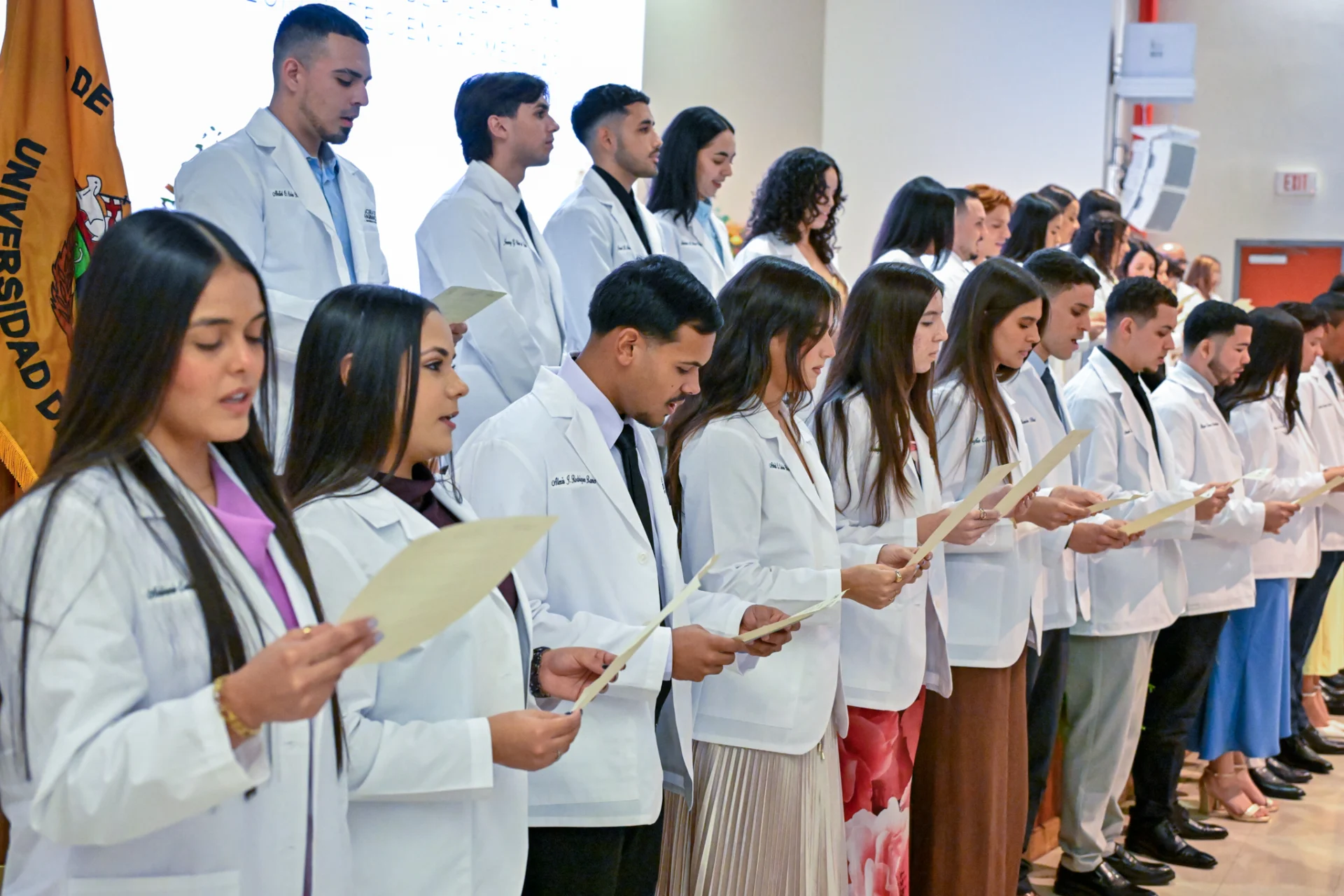 Por su parte, la doctora Maldonado destacó: “Este acto simbólico representa el inicio de su etapa profesional, cuando hacen la transición de estudiantes universitarios a futuros profesionales en las ciencias de la salud, en este caso en farmacia. Hoy nuestros estudiantes hacen la promesa solemne de mantener un comportamiento y ejecutoria ejemplares en el ámbito académico, en la comunidad y, por encima de todo, en el cuidado de los pacientes. La bata blanca que reciben simboliza transparencia, respeto y confianza en la labor como farmacéuticos que serán. El color blanco representa vida, pureza, empatía y profesionalismo en el cuidado de la salud. Enfrentarán retos, sin duda, pero cada desafío superado los acercará a convertirse en los farmacéuticos y científicos que Puerto Rico necesita”.