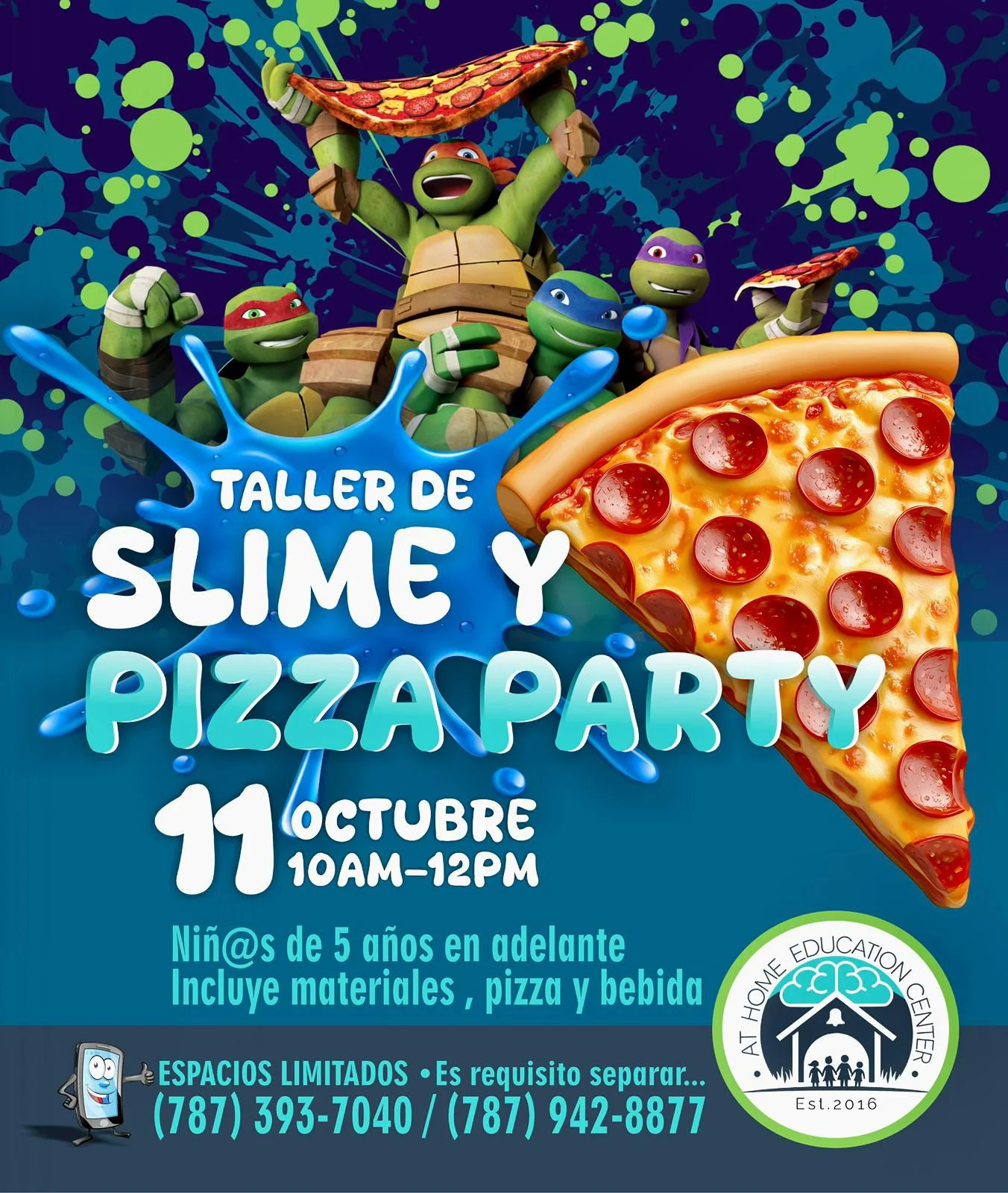 At Home Education Center, academia líder en Neuroeducación en Puerto Rico, anuncia con entusiasmo la celebración de su próximo Taller Infantil de Creación de Slime y Pizza, a realizarse el sábado, 11 de octubre de 2025, en sus facilidades en Arecibo.