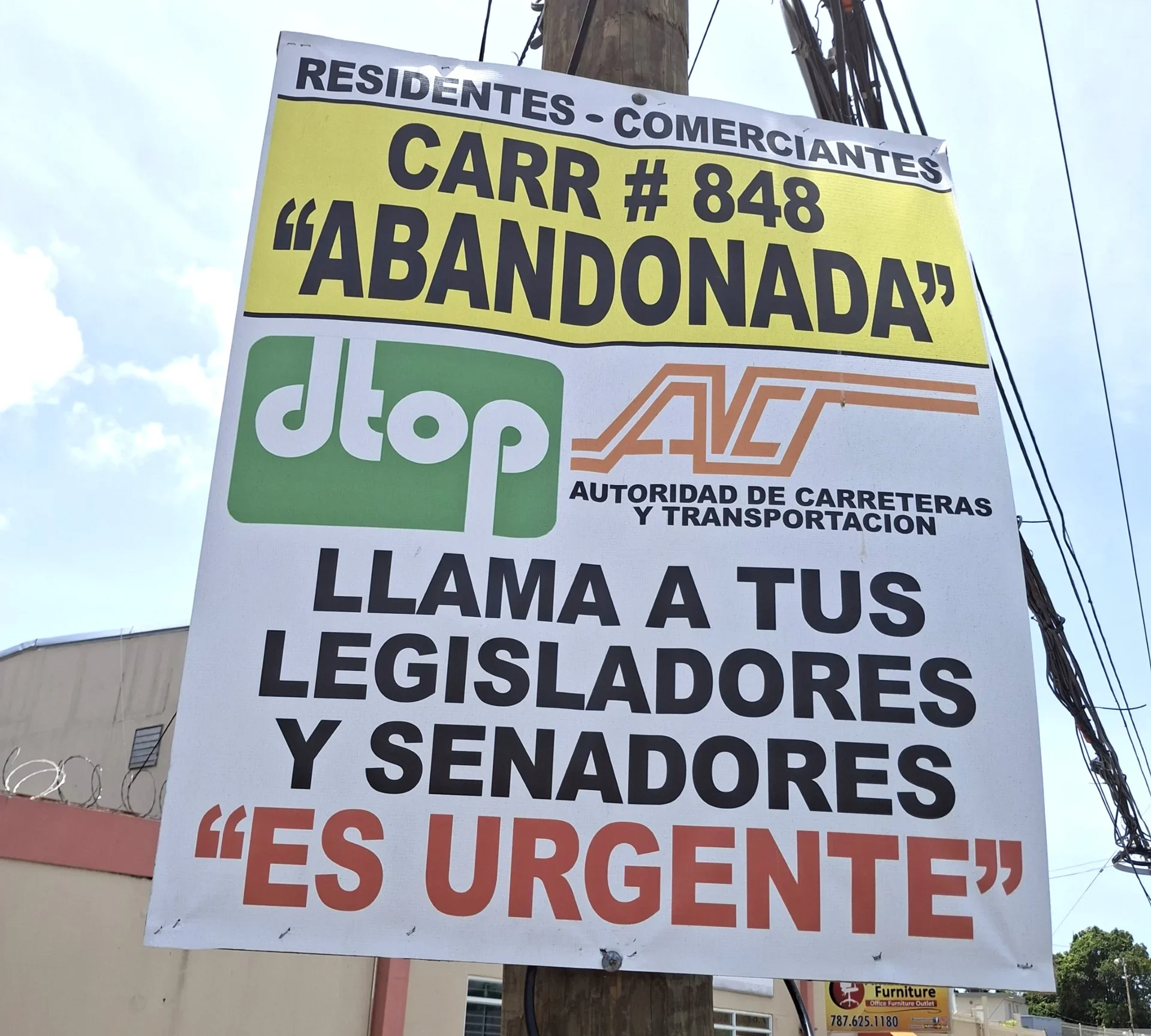“Nosotros estamos siendo objeto de un abandono total por parte de las autoridades Municipales y Estatales, lo que ha llevado a un deterioro total en nuestras carreteras y caminos.  Un ejemplo de esto lo constituye en abandono total del mantenimiento de una de las vías más transitadas en el área metropolitana como lo es la vía PR-848, la cual se encuentra prácticamente intransitable en varios tramos. De igual manera, la misma carretera no cuenta con aceras o espacios para caminar lo que obliga al peatón a usar el pavimento como su único modo de transitar a pie.  Por razones que se desconoce, la PR-848 es la vía preferida para camioneros que transitan de oeste a este, lo que complica la “calidad de vida” del sector. Diariamente vemos choferes que abusan de la velocidad y mantienen un estado descontrolado con la amenaza de sus gigantes vehículos.  Otra de las dificultades que enfrentamos es que a pesar que existe un Cuartel de la Policía Estatal en la Comunidad jamás hemos visto que algún agente (Policía) en servicio detenga a un camionero para orientarlo o denunciarlo.  Esto es un descontrol total, a parte que no tenemos rondas preventivas de la Policía Municipal de Trujillo Alto”, señaló Eulogio Vivaldi, líder de la comunidad.
