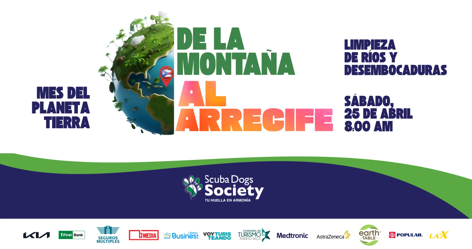 En el marco del Mes del Planeta Tierra 2026, Scuba Dogs Society (SDS) anunció la celebración del evento “Cuidando a Puerto Rico desde la Montaña hasta el Arrecife”, que se llevará a cabo el sábado, 25 de abril de 2026 desde las 8:00 a.m., con limpiezas simultáneas en ríos y desembocaduras alrededor de Puerto Rico. La organización informó además que ya se encuentra abierto el registro de voluntarios para participar en esta iniciativa de impacto ambiental y comunitario.