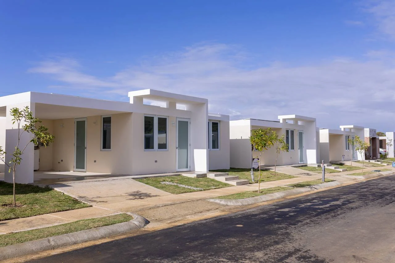 Las residencias que están compuestas de tres habitaciones y dos baños, han sido diseñadas con elementos de resiliencia, que incluyen sistemas fotovoltaicos con baterías, calentadores solares y cisternas de agua, con el objetivo de fortalecer la capacidad de las viviendas para responder ante interrupciones de servicios esenciales y eventos naturales. Además, cada vivienda cuenta con nevera, estufa y abanicos de techo.