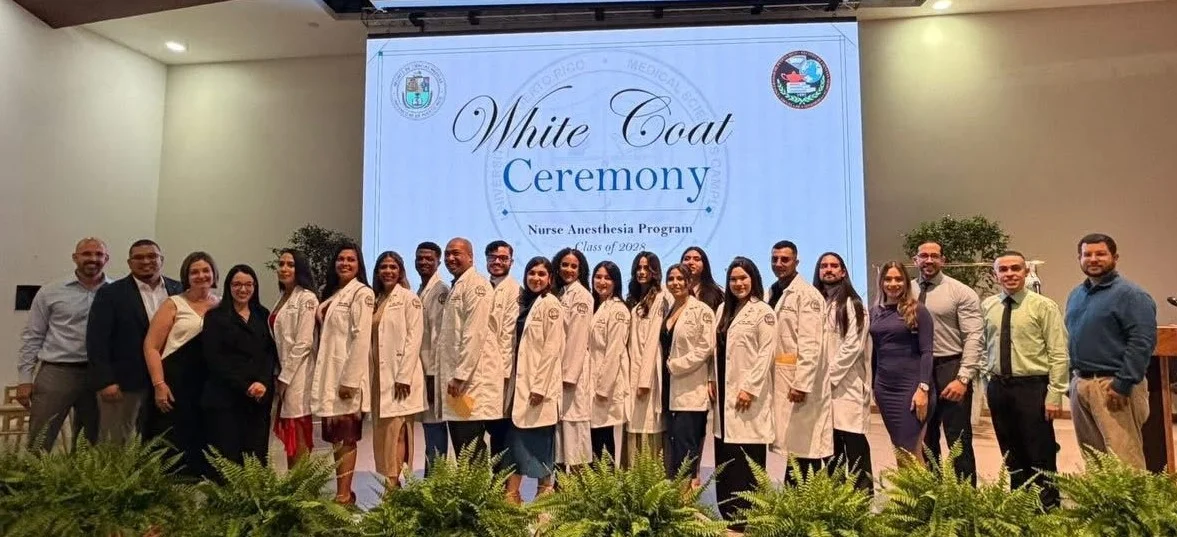 La Escuela de Enfermería del Recinto de Ciencias Médicas de la Universidad de Puerto Rico (RCM-UPR) celebró con emoción la Ceremonia de Investidura de la Bata Blanca de 17 estudiantes que realizan estudios de Doctorado en Práctica de Enfermería con Especialidad en Anestesia (DNP-SA).