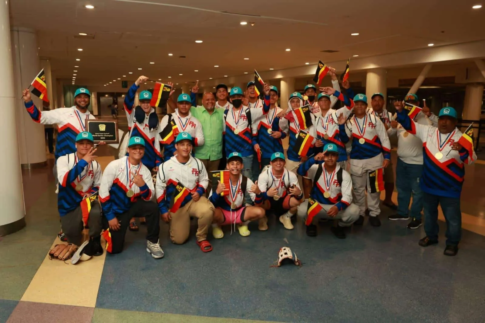 El alcalde de Guayama, O’brain Váquez Molina, junto a un grupo de guayameses, al son de plena recibieron ayer al equipo de pequeñas ligas, Radamés López de Guayama el cual se proclamó campeón mundial del torneo Senior League Baseball World Series 2022. Esto luego de derrotar anoche, sábado, al equipo Fleet Park de Norfolk, Virginia, en un partido realizado en Carolina del Sur. Los jugadores de la categoría 15-16, arribaron al aeropuerto internacional Luis Muñoz Marín alrededor de las 9:00 de la noche, contentos y orgullosos de sus logros y de ostentar el campeonato.