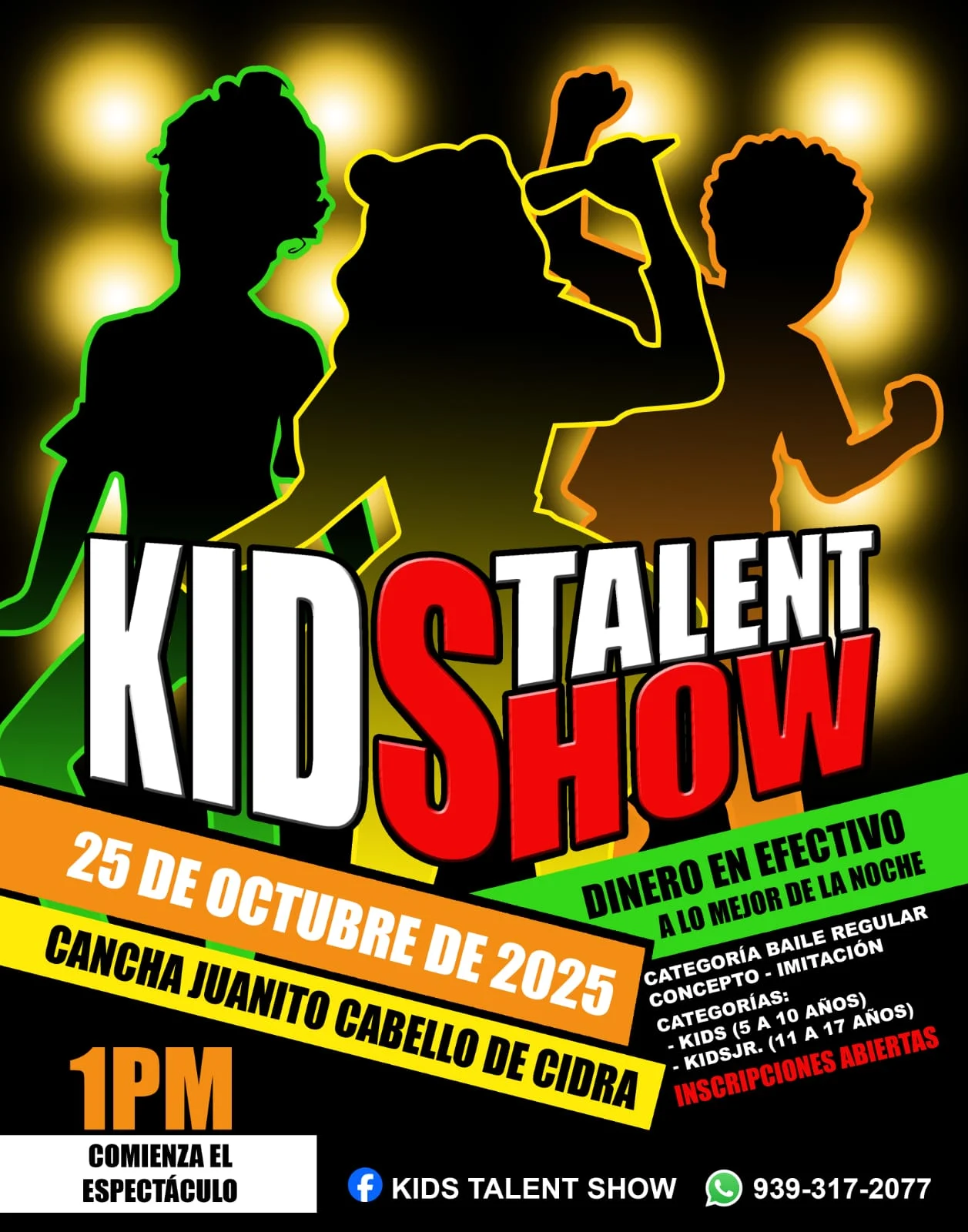 Bajo la producción de Jorge Collazo Ortiz, se celebrará en la Cancha Juanito Cabello del pueblo de Cidra la primera edición del “Kids Talent Show”, un evento diseñado para resaltar el talento artístico de grupos, academias y solistas en Puerto Rico.