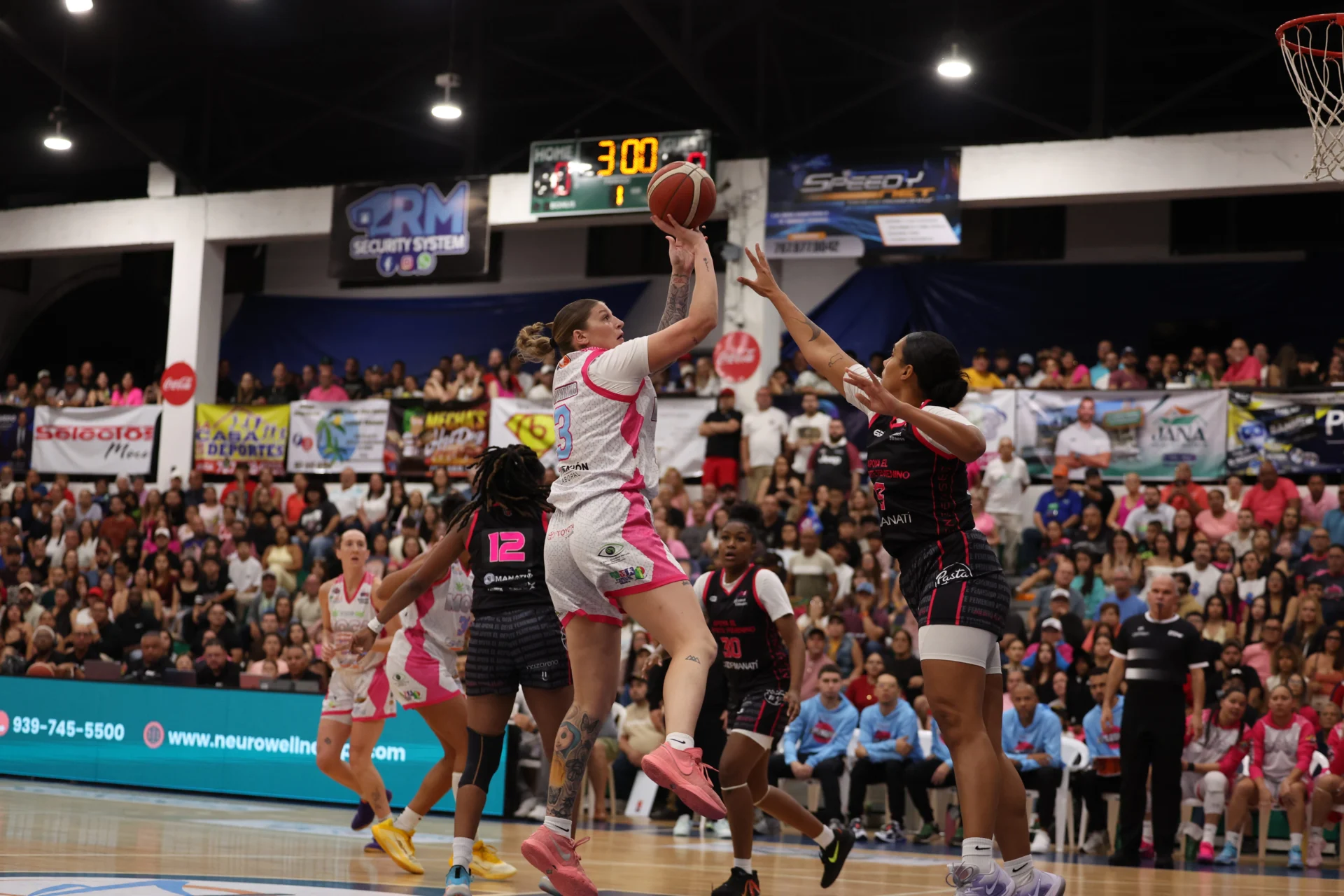 Desde tempranas horas la energía era increíble en el coliseo, debido a la demostración y apoyo del público que llenó la cancha a capacidad. Ambos quintetos salieron con mucha fuerza, pero las Explosivas tomaron control de la pizarra de anotaciones desde temprano. La ofensiva de Moca estuvo liderada por Samantha Fuehring, y por Manatí fue India Pagán quien llevó la voz cantante. El primer cuarto del juego terminó 18 por 10 con ventaja para el equipo de Moca.