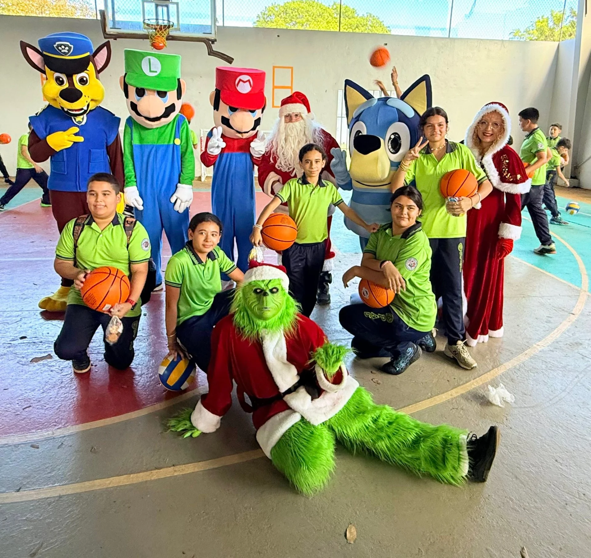 Bluey, Mario Bros y el Grinch fueron algunos de los personajes que deleitaron a los estudiantes. Con ellos también participaron Santa Claus y su esposa quienes escucharon los deseos de los niños mientras se fotografiaron y les recordaron la importancia de portarse bien.