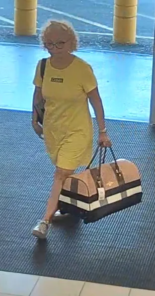 Para la fecha del miércoles, 22 de enero, en hora de la mañana, esta persona sospechosa una mujer adulta mayor, se encontraba en la tienda Burlington en Manatí, por el área de calzado y se apropió ilegalmente de un bulto tipo mochila que se encontraba en el área del asiento de probadores de calzado, ya que le dueña de la cartera estaba midiéndose un calzado.
