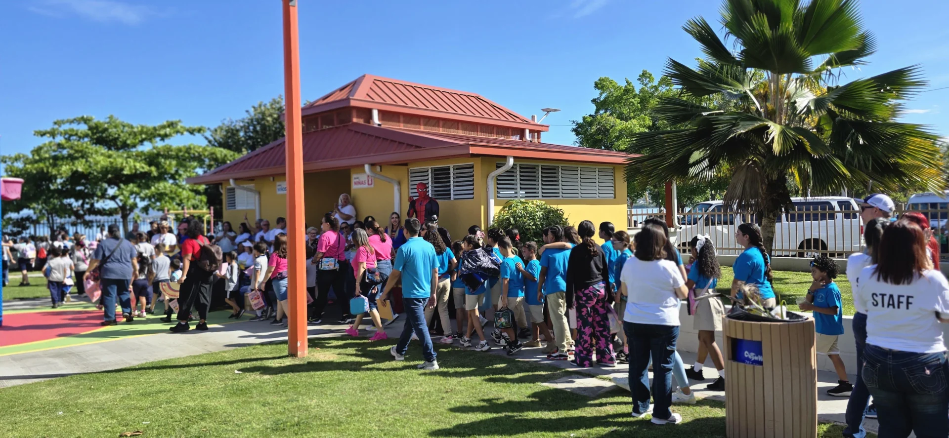 El agente Luis Rodríguez, la agentes Jessica Rivera y el agente Luis Ramos bajo la supervisión del teniente Luis González Torro junto al agente Ismael Figueroa, quien fue invitado con su personaje de Batman, participaron en mencionada actividad.
